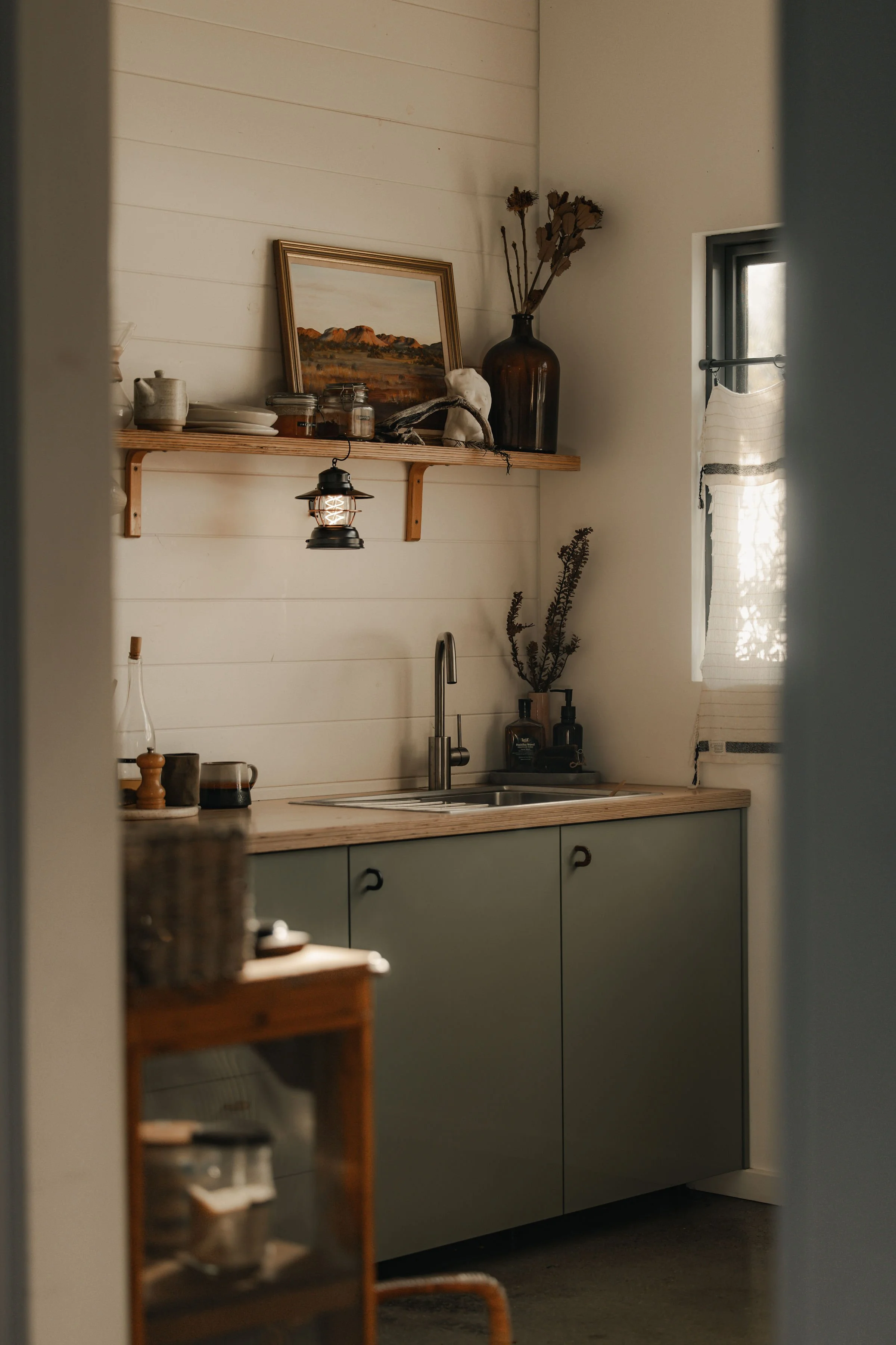 The mission here was to turn the existing 70’s shed into guest accommodation for friends, family and a short term accommodation business - with a pared back sense of luxury, generous in feel, accessible design elements and independent operation - all within in a 35m2 footprint. The space was designed as both a place to host, and a space that could accommodate ageing parents comfortably should the need arise, incorporating accessible design elements and adaptability in an beautiful way - a passion of the Mood Concepts team.